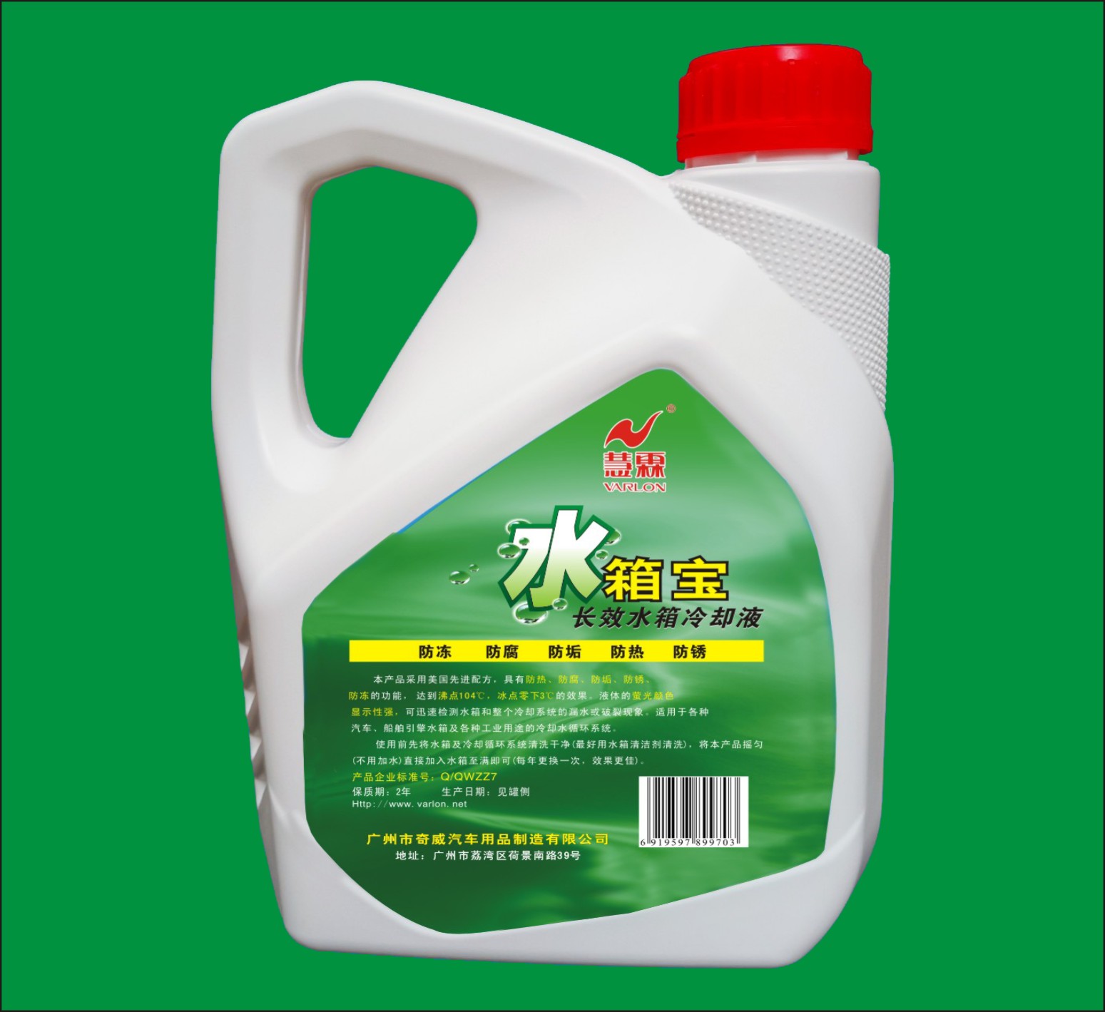 性能與用途:本產(chǎn)品采用美國先進(jìn)配方,具有防熱、防銹、防沸、防腐、防凍的功能,達(dá)到沸點104℃,冰點零下3℃的效果。液體的螢光顏色顯示性強,可迅速檢測水箱和整個冷卻系統(tǒng)的漏水或破裂現(xiàn)象。適用于各種汽車、船舶引擎水箱及各種工業(yè)用途的冷卻水循環(huán)系統(tǒng)。